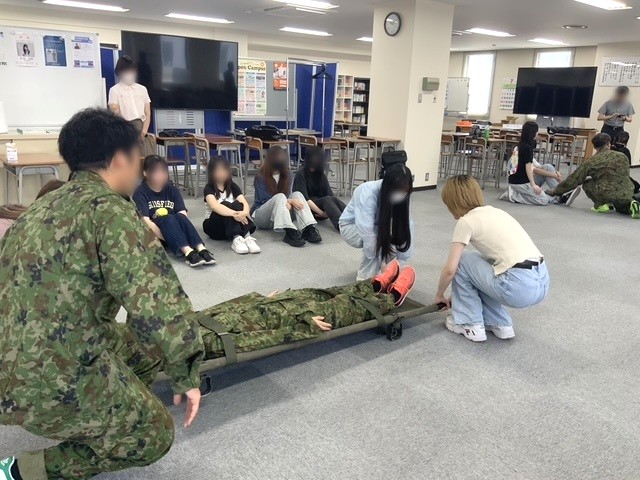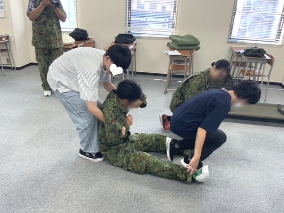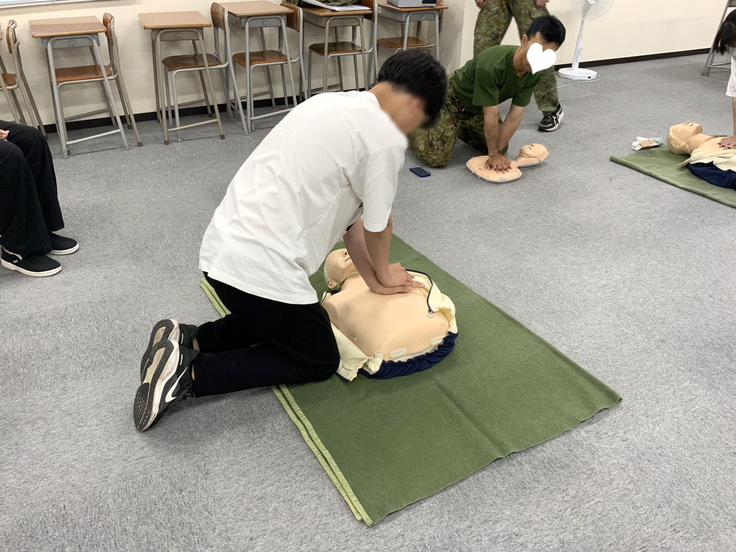 今回、1年生はAED体験、2,3年生はライフハック体験を