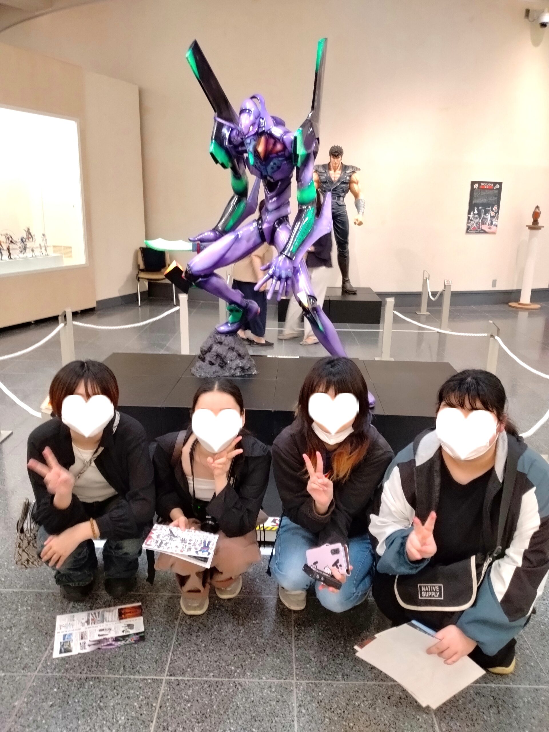 展示されている作品や資料を真剣に見ている生徒や、