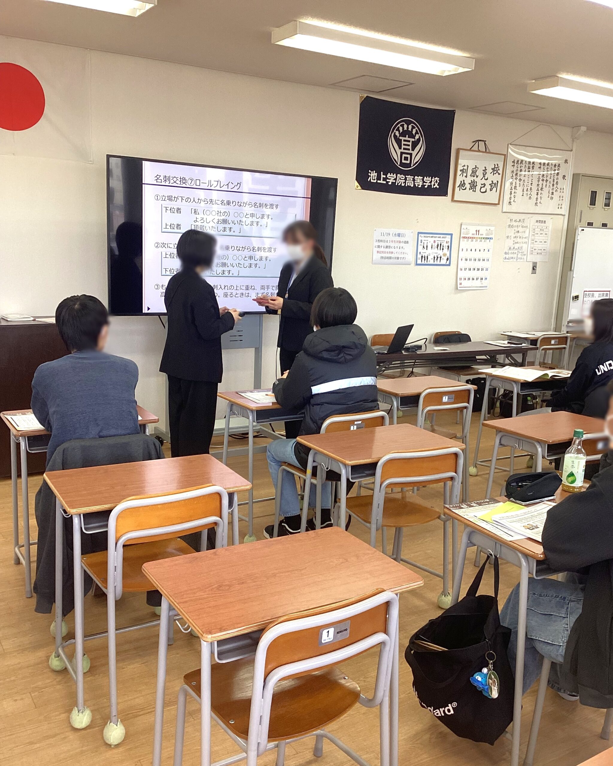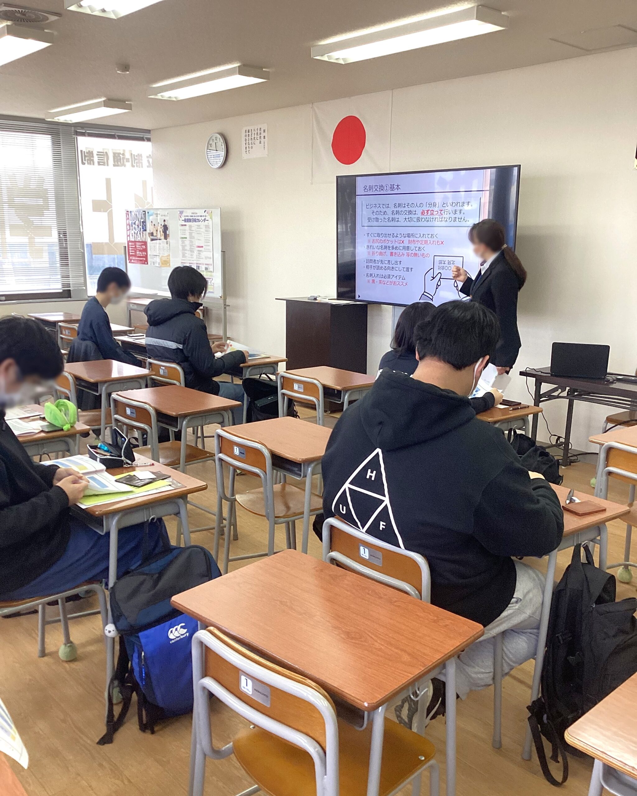 ほとんどの生徒が、初めて名刺交換をするということもあり