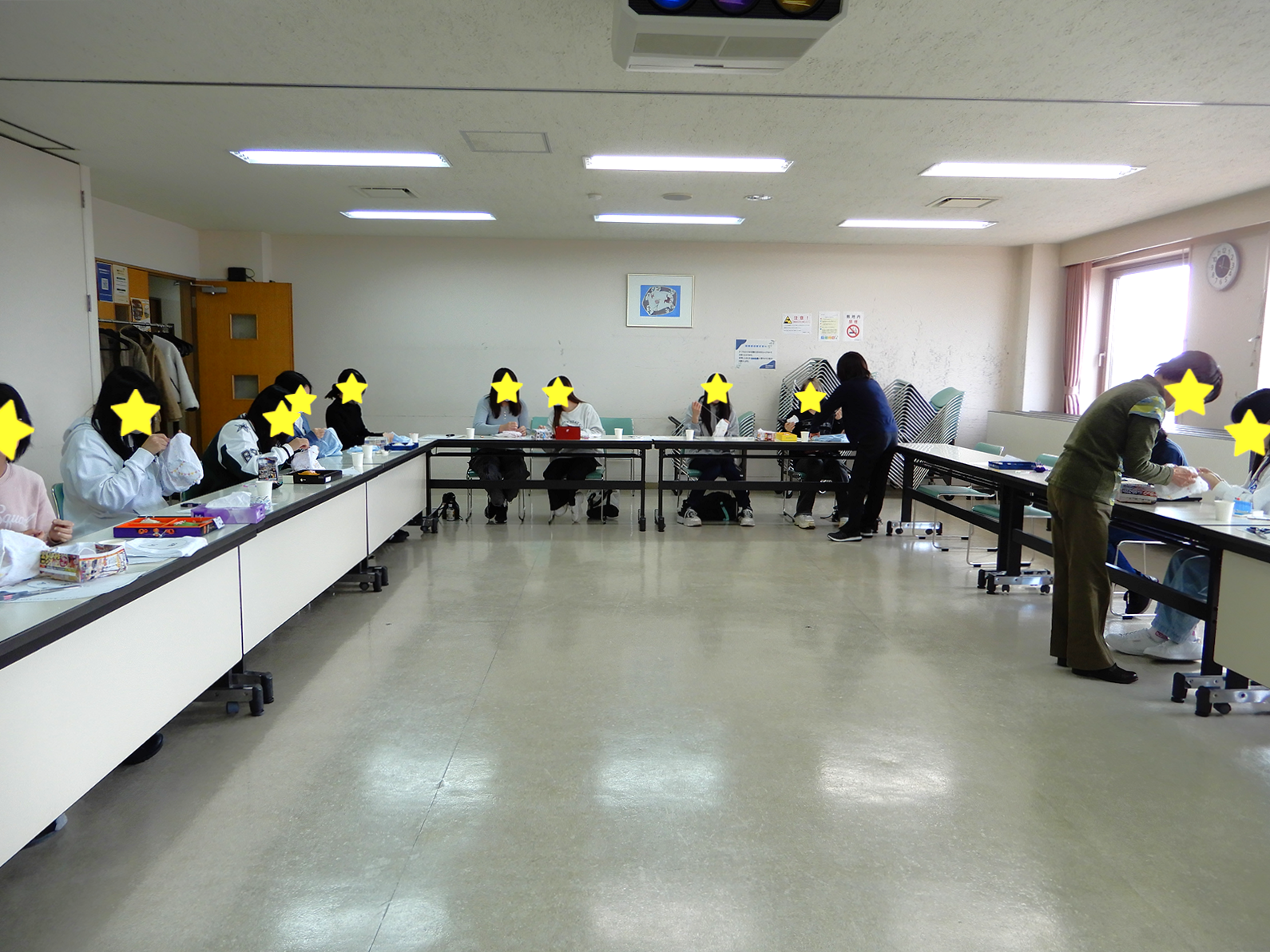 当日は11名の生徒が参加し、「タオル帽子」を制作しました。