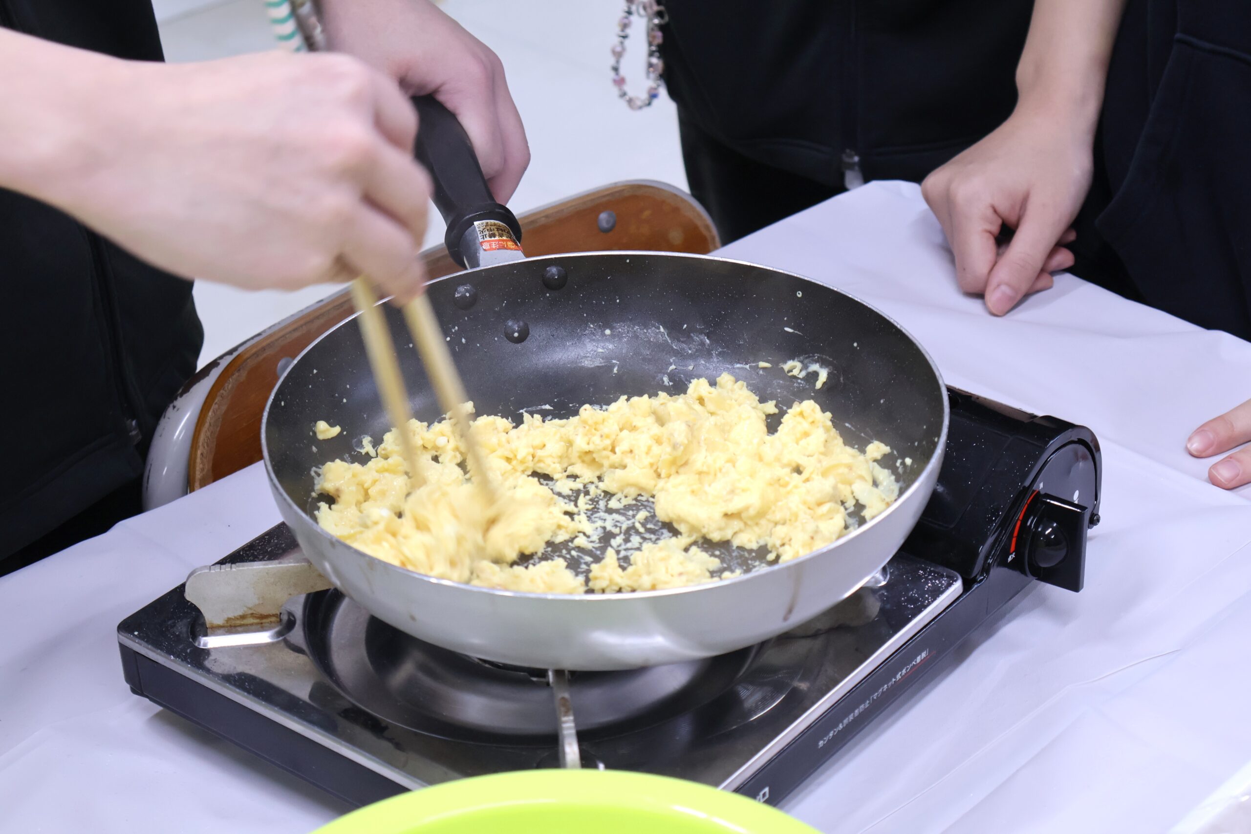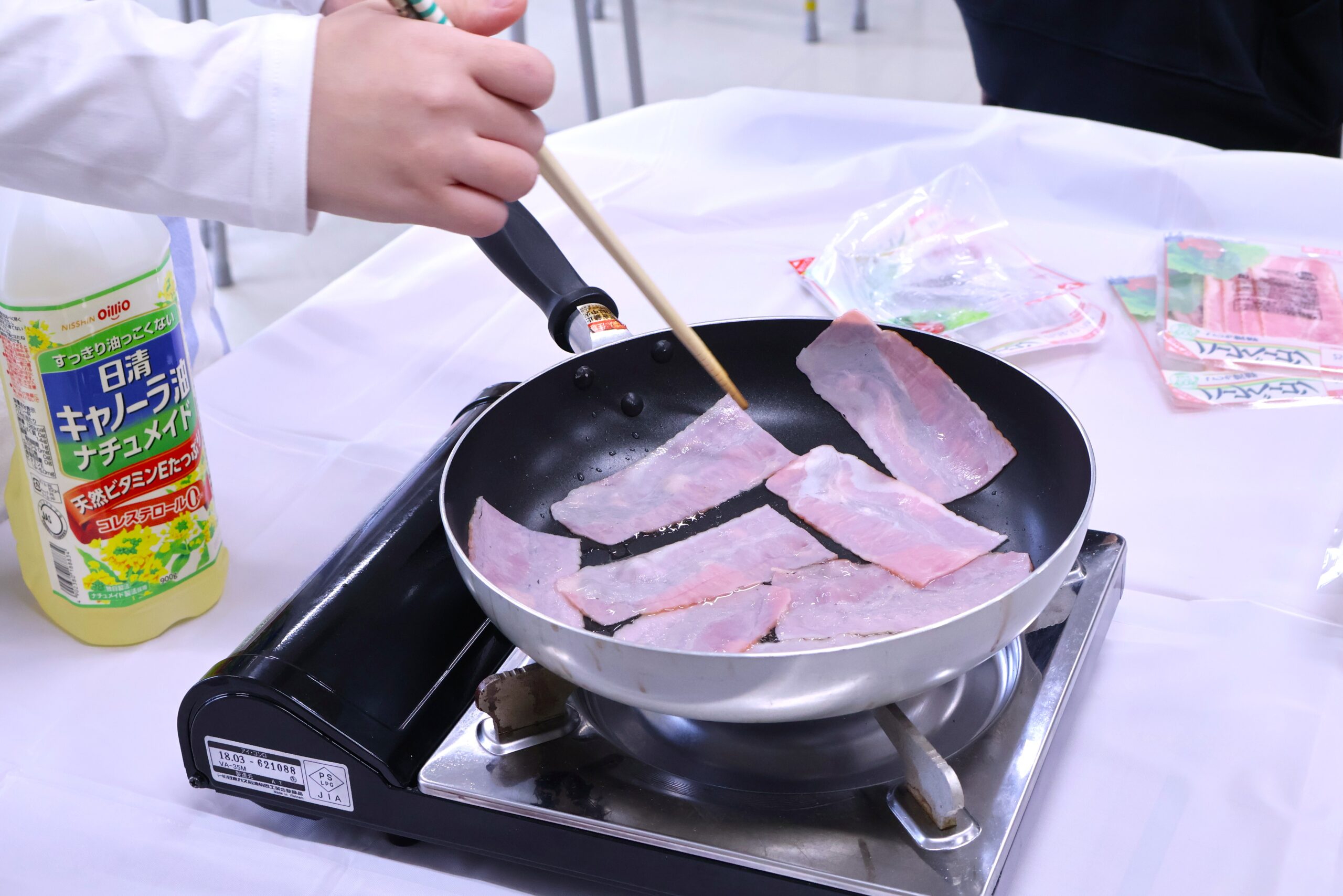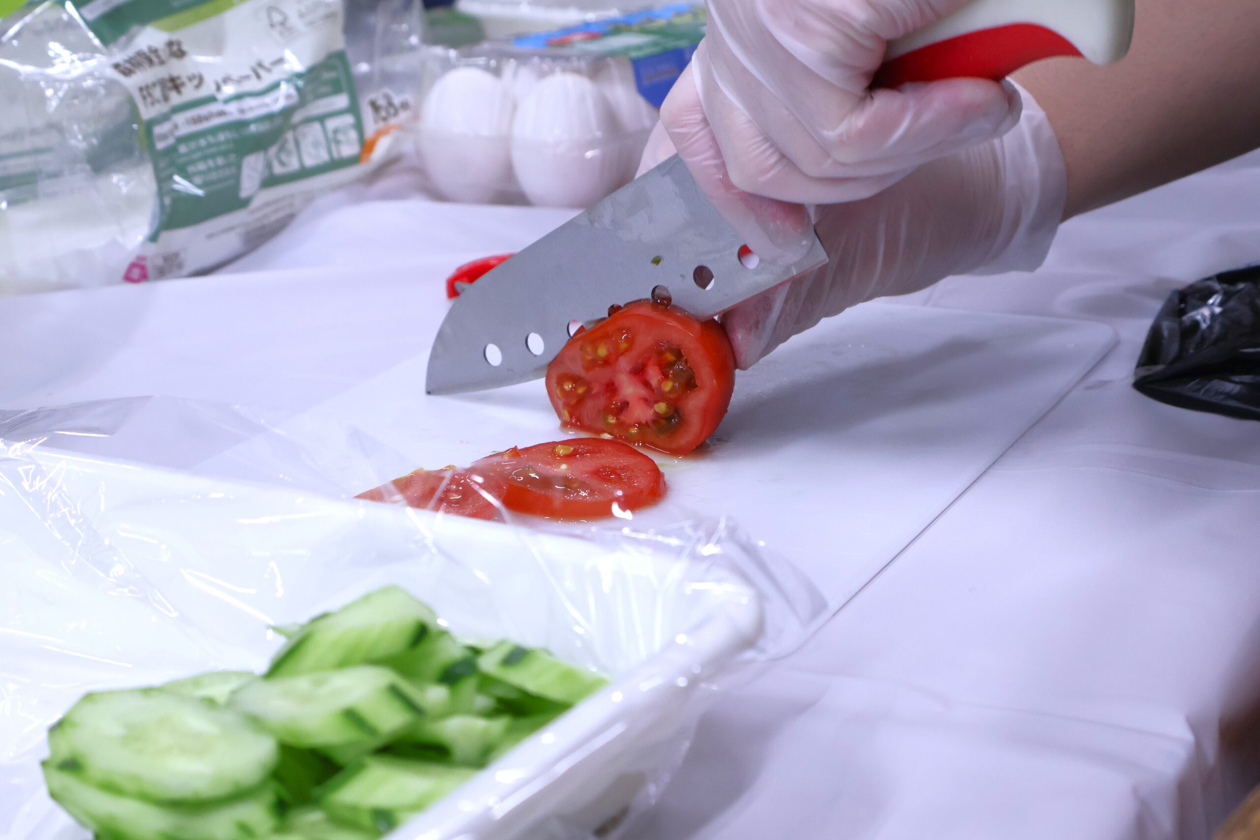 昼休みに生徒たちは提供するサンドイッチの具材を準備!