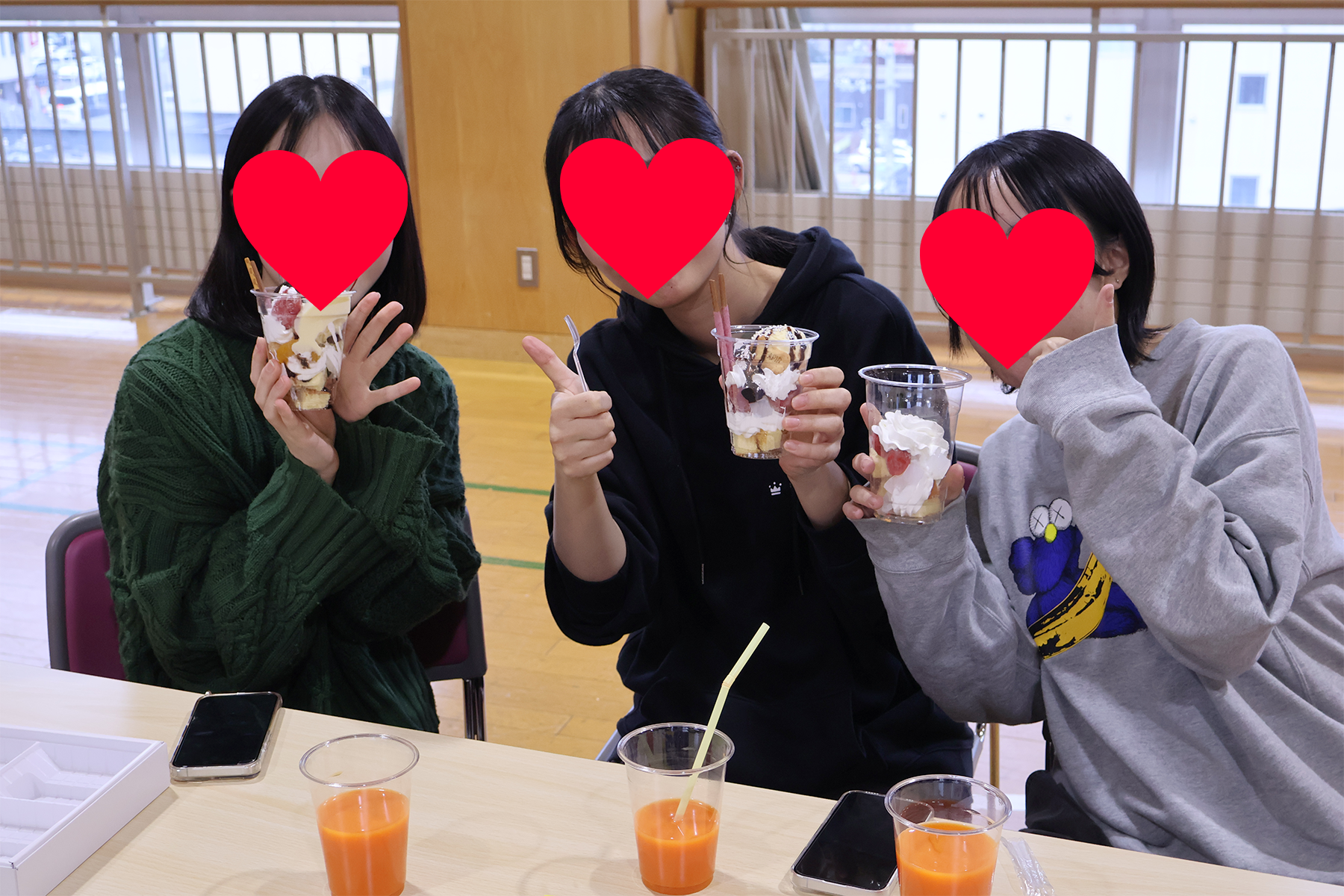 生徒は自分で作ったパフェをおいしそうに頬張っていました!
