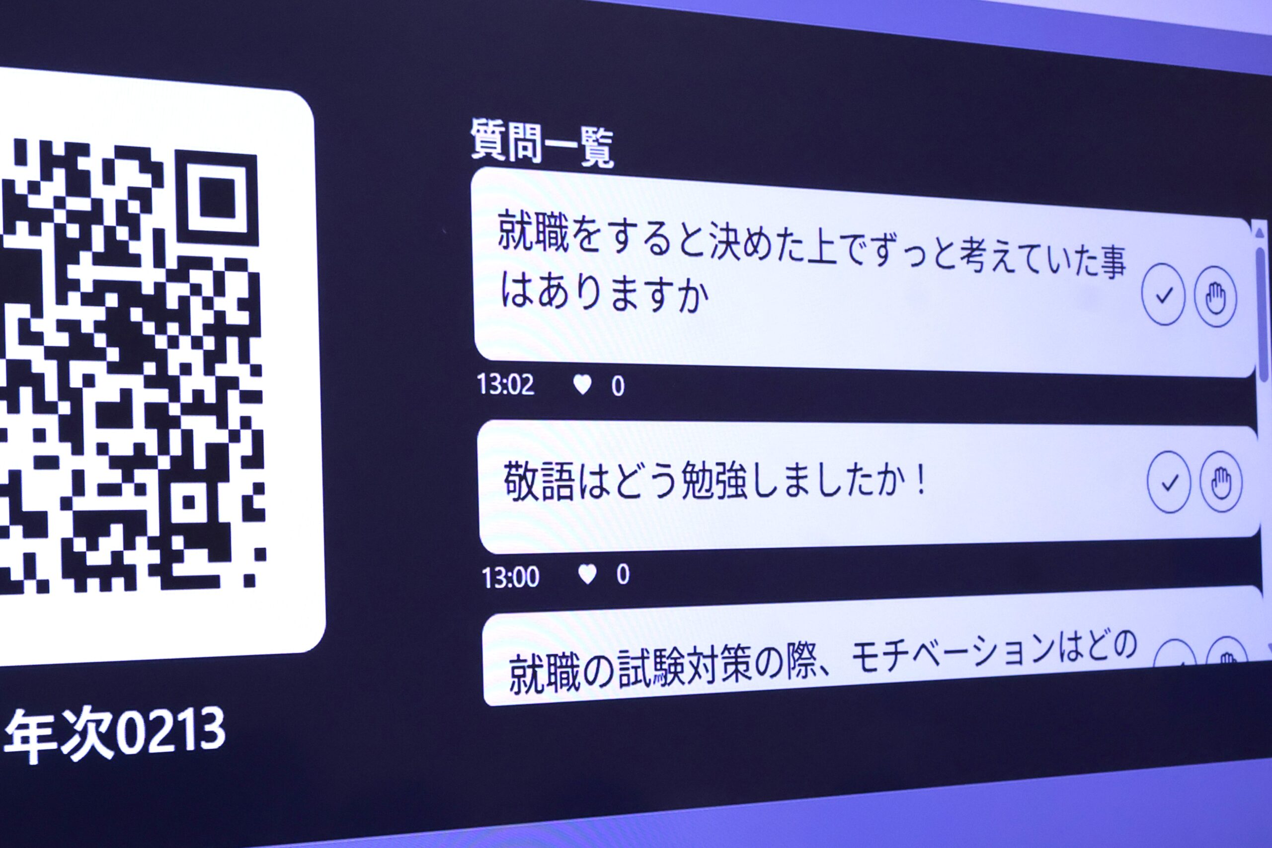 座談会では、匿名で質問ができ、3年生のリアルな声を聞くことができます。