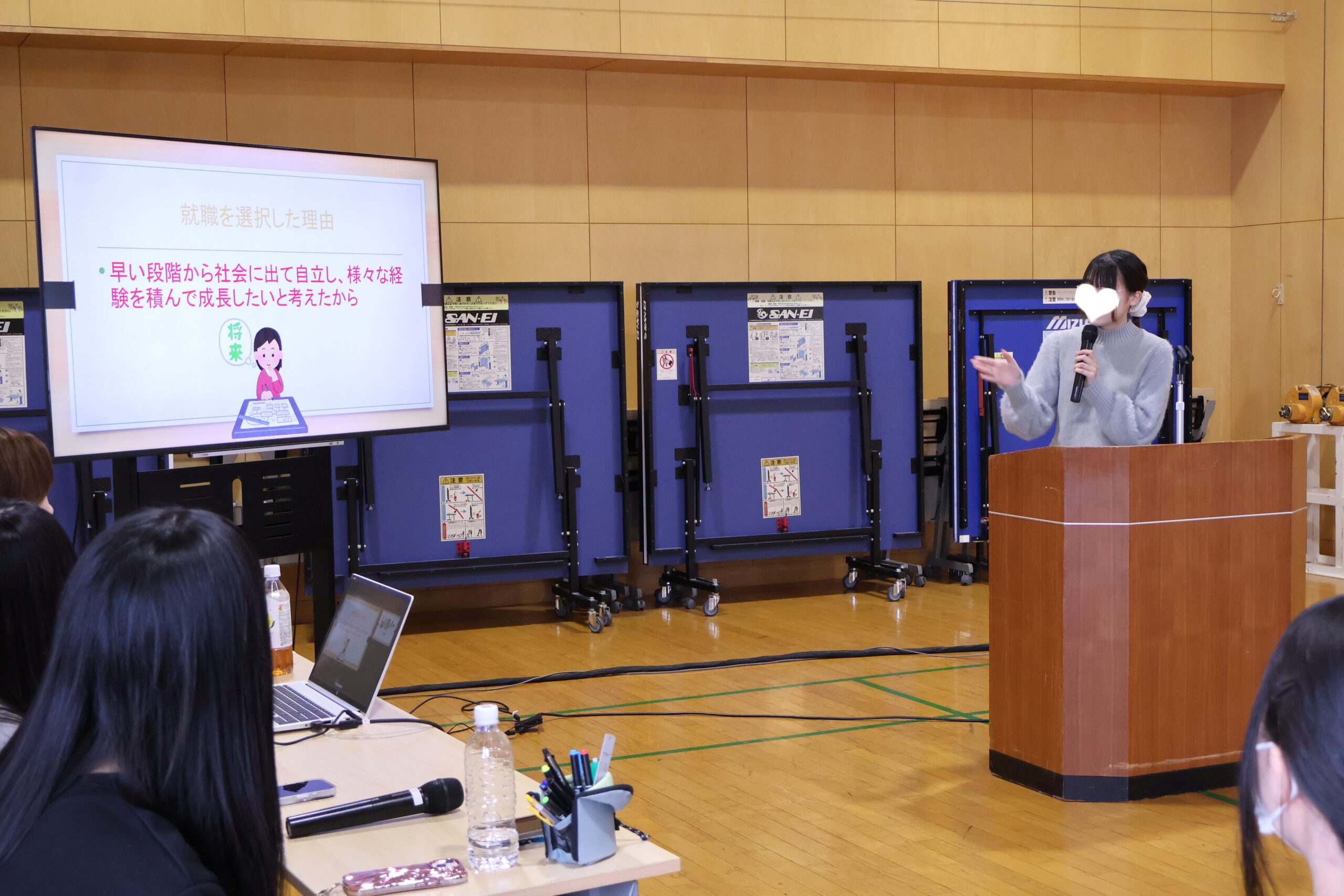 今回は、話を聞くために1,2年次の生徒が50名以上も集まりました!