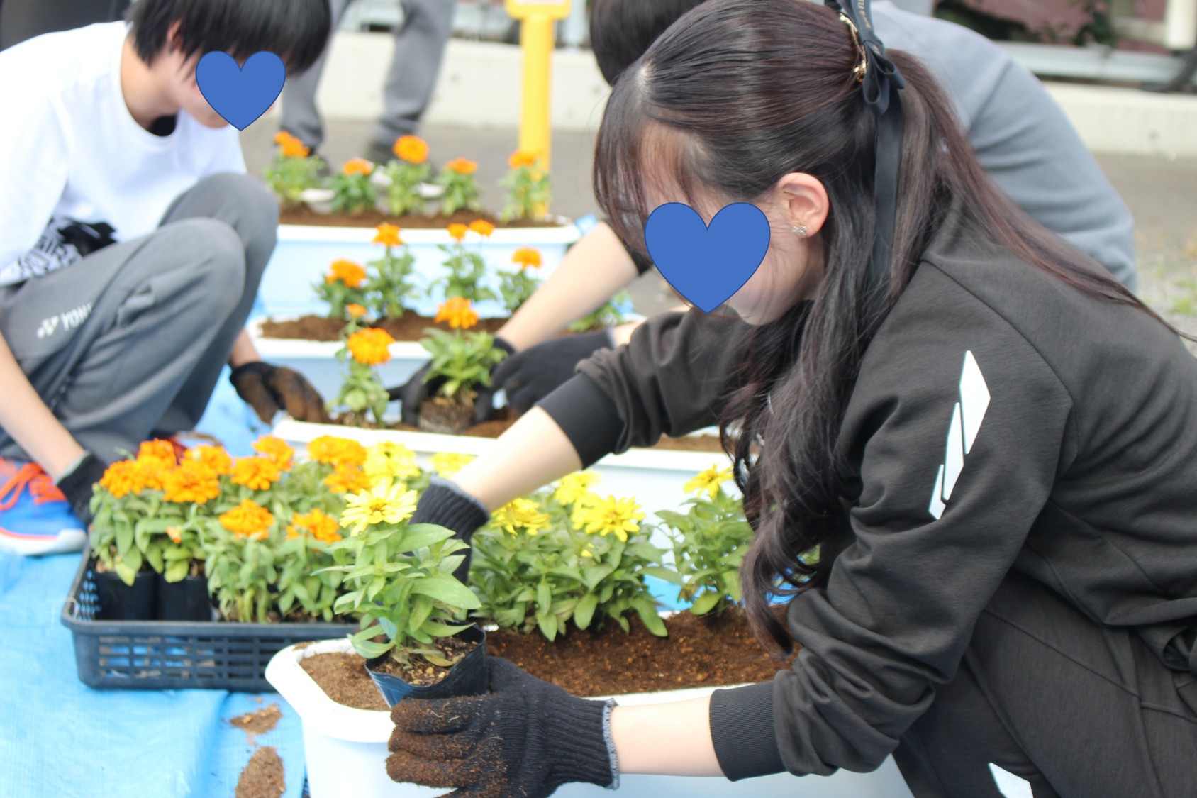 作業を終えた生徒は、達成感に満ちた表情で並んだ花を見つめていました!